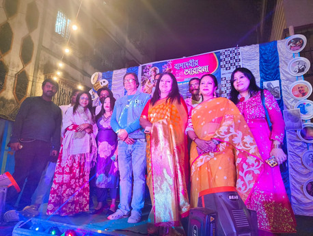 News Desk, News Nation 360 : Baldeo Para Road at Maniktala hosted the Saraswati Puja with the theme "Bhalobeshe Pujo Kori" (Worship with Love). The Honourable Minister Late Sadhan Pande was the main sponsor of this puja. This celebration's fundamental tenets were to worship via love, support the populace, and strengthen the emotional and spiritual ties that bind people to society. The celebration of older folks was one of the event's highlights this year. The program's main goal was to create a respectful and loving environment by uniting individuals from the neighbourhood and beyond. The program commenced with a captivating dance performance by the Shivam Group, directed by Ankita Biswas, which greatly enthralled the audience. This was followed by the debut performance of the band ‘Shoroni’, led by Imon Mukherjee. Accompanying the band was American artist Srijay Mitra, a key collaborator of Shoroni. His solo piano recital was one of the major attractions of the evening, earning high praise from everyone present. During the event, it was officially announced that Imon Mukherjee’s debut short film, under the banner of JBS Productions, will be screened on February 15th at “Radha Studio.” Additionally, the film will be released on their YouTube channel for a wider audience to enjoy. The event also signalled the release of the poster for Imon Mukherjee's online series "Mukhosh" (The Mask). The head of JBS Productions, Pratim Basak, unveiled the poster. Sayan Sengupta, Srikanta, Ruby Dutta, Riya Gupta, and Associate Director Debanjan Sinha are among the members of the production's creative team. The tribute to the elderly was another poignant part of the evening. Shankha Gupta and Sayan Sengupta gave mementoes to senior persons and veteran writer and artist Suparna Chatterjee. The next part was a solo musical performance by Imon Mukherjee, accompanied by musicians Ayan Singh, Soumyajit, Soumya, and Sayan.